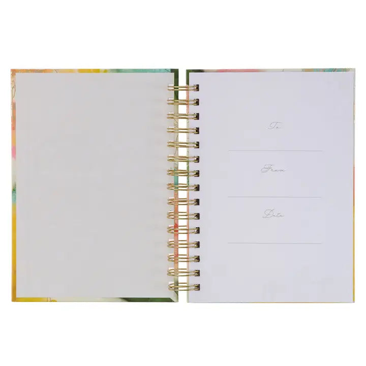 The Faithfulness Pastel Meadow Wirebound Journal's bright feminine design and encouraging message will sustain you as you note your thoughts and prayers during your devotional time. Abstract hazy flower meadow design, Title in black debossed lettering, Great is thy faithfulness, Pastel Meadow Collection, Hardcover, Wirebound, 192 lined pages, Scripture on every page, Presentation page, Size: 8.4” x 6.4” x 1” (213 x 163 x 25 mm)