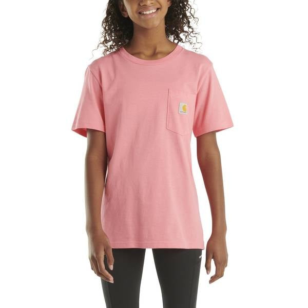 Work hard, play hard. This girls' crewneck t-shirt is a kids-sized version of Carhartt's classic pocket tee. It's made of a midweight cotton blend, so it lasts all school year and then some.