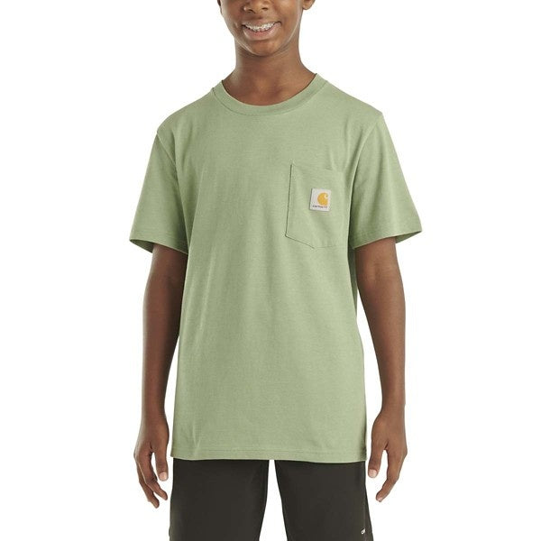 At the campsite or in the back yard, kids learn a love of nature by being outside. This boys' Carhartt t-shirt has a sturdy build that stands up to everyday wear. A wilderness graphic on the back shows his love for the outdoors.