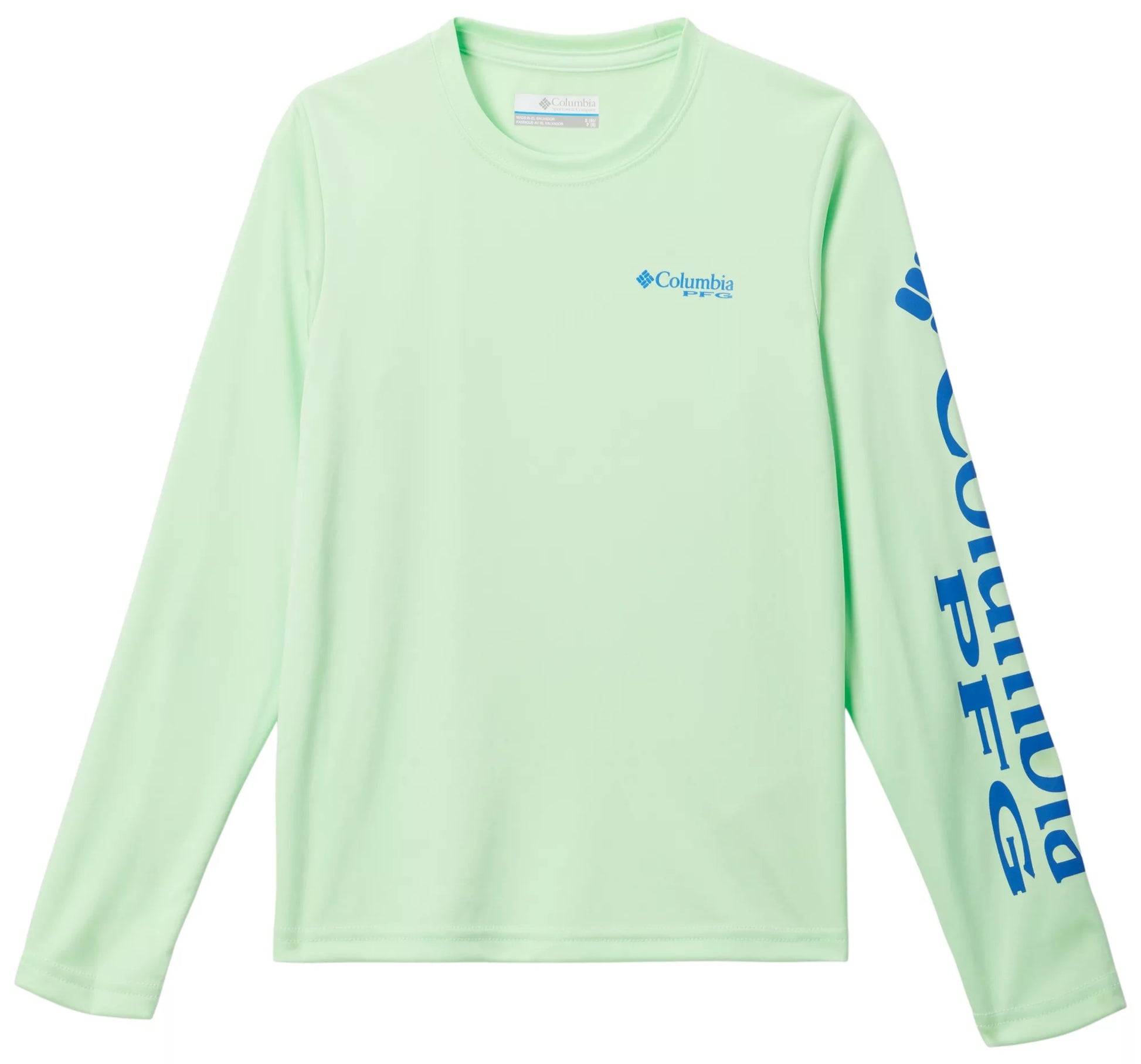 They'll be ready for the water in the Columbia® Terminal Tackle™ Long-Sleeve Shirt for Toddlers or Kids. Made of featherweight yet ultra-durable 100% polyester interlock, this long-sleeve Columbia shirt for kids sports fast-drying, moisture-wicking, Omni-Wick™ enhancements and Omni-Shade™ UPF 50 sun protection. A Columbia PFG wordmark logo down the left sleeve gives style and attitude. Perfect as a kids' fishing shirt or addition to their kids' activewear collection, The Columbia Terminal Tackle Long-Sleeve Shirt for Toddlers or Kids keeps them cool, light, and dry. Regular fit. Machine wash. Imported. 100% polyester interlock fabric Omni-Wick advanced evaporation Omni-Shade UPF 50 sun protection Moisture-wicking Quick-drying Lightweight Left-sleeve Columbia PFG wordmark logo Regular fit.