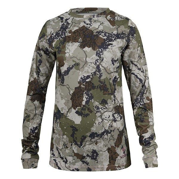 The Women's Hunter Long Sleeve Tee uses birds-eye mesh technology to provide natural moisture wicking properties to keep you dry and comfortable. The polyester also provides a high definition camo print and durable fabric to withstand rigorous use on any hunt.
